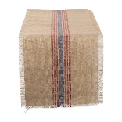 DII Kitchen Tabletop, Natural Jute, Center Stripe Blue & Red, 14x108