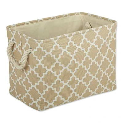 DII Polyester Container with Handles, Lattice Storage Bin, Small, Vintage Linen
