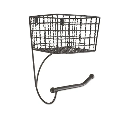 DII Rustic Roll Dispenser with Storage Basket for Bathroom, Stainless Steel, Gray, Toilet Paper Holder