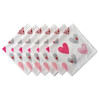 DII Valentine's Day Table Top Decor, Napkin Set, 20x20, Hearts Collage, 6 Piece