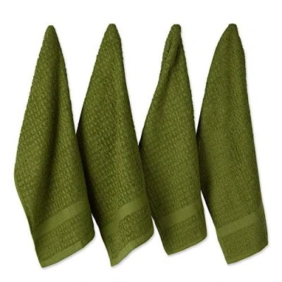DII Waffle Dishtowel Set, Cotton, Solid Antique Green, 15x26
