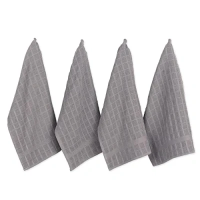 DII Windowpane Dishtowel Set, Cotton, Gray Solid, 16x26