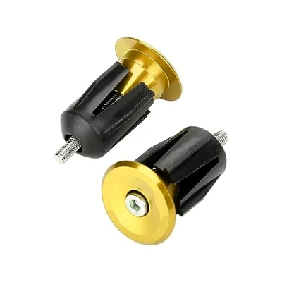 Dilwe Handlebar End Cap, 1 Pair Aluminum Alloy Bike Bicycle Handle Grip Bar Plug Cap Parts(Yellow)