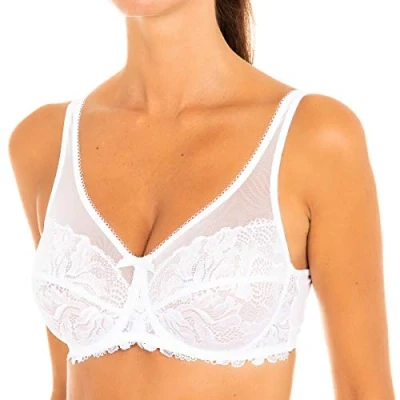 ideal SUPPORT FOR BIG CHINS: Non-padded, underwired cups for ideal support without compromising on style ELEGANT PLAY OF TRANSPARENCY: Transparent tulle at the top of the cups and fashionable print for a refined neckline DAILY COMFORT: Unpadded design for a natural, pleasant feel all day long COLOUR & SIZE CHOICE: Available in white or black, from B to E cup - sizes 85C to 105D SIGNATURE DIM: A creation by a French lingerie expert, combining style, comfort and quality