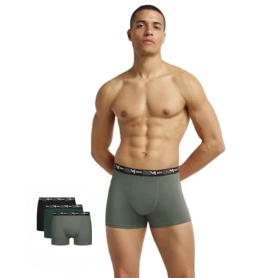 DIM Men's Coton Stretch Respirant Maintien Optimal x3 Boxer Shorts, Noir/Vert Chrome/Vert Agave, L (Pack of 3)