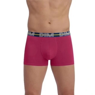 New size of 3 Dim Powerful boxer shorts in fashionable and trendy colours Wide waistband with relief effect and soft stretch cotton for optimal comfort Pack of 3 plain boxer shorts with graphic waistband featuring Dim logos all the way around