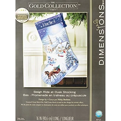 Gold Cross Stitch Approx. 16 Long (41 cm) 16 count dove grey Aida / White Felt Wool Yarn / Cotton Thread 16 count dove grey Aida Dusk Sleigh Ride Easy Instructions