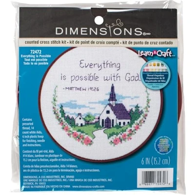 Dimensions Learn A Craft Counted Cross Stitch Kit 6" Round Everything is Possible (14 Count)