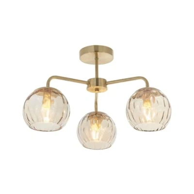 Dimple Multi Arm Glass Semi Flush Ceiling Light Satin Brass Plate, Champagne Lustre