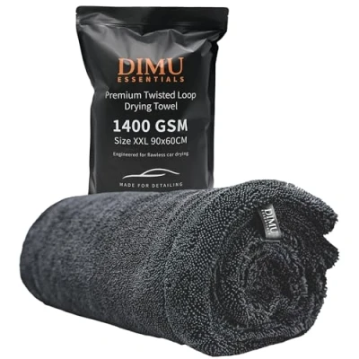 Dimu Essentials Microfibre Car Drying Towel XXL 90x60cm 1400GSM Twisted Loop Dark Grey Ultra Thick Absorbent Cloth for Wash & Detailing