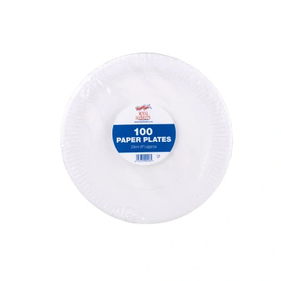 Royal Markets 9 Inch White Paper Plates (pack of 100) offer durable, eco-friendly disposable plates made from virgin fibreboard with a moisture-resistant plastic coating, ideal for parties, catering, and events. These recyclable and compostable plates save cleanup time while supporting sustainable event planning.