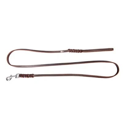 Soft leather leash is kept in a classic brown tone. This product is handmade of soft genuine leather Brown lead is 230 cm long and 1.2 cm wide (braided parts are wider) Soft leather lead comes from full grain leather that was tanned with plant method and is completely safe for animal's hair Genuine leather leads have chromed fittings, that are stainless and durable. Chromed carabiner allows quickly leash and unleash the dog Dingo, original brand since 1977, provides the high quality products