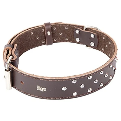 Dingo Designed Leather Dog Collar, Lined with Felt, Decorative Studs, Durable, Brown 12091