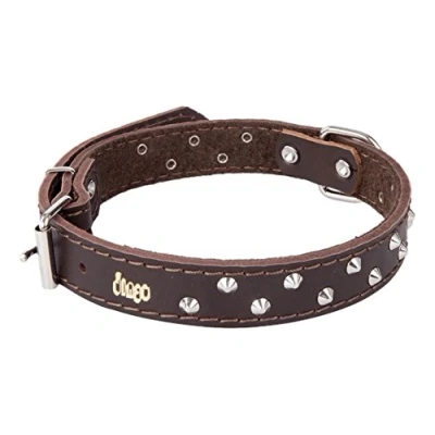 Dingo Designed Leather Dog Collar, Lined with Felt, Decorative Studs, Durable, Brown 12478