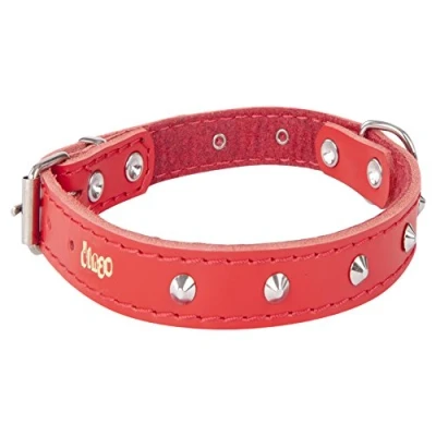 Dingo Designed Leather Dog Collar, Lined with Felt, Decorative Studs, Durable, Red 12048