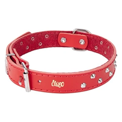 Dingo Designed Leather Dog Collar, Lined with Felt, Decorative Studs, Durable, Red 12484