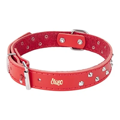 Dingo Designed Leather Dog Collar, Lined with Felt, Decorative Studs, Durable, Red 12048