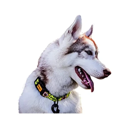 Dog collar in yellow and black with a safety warning, DO NOT PET, designed to alert people that your pet is not comfortable with touch and/or human interaction Reversed collar has a black colour with yellow warning "DO NOT PET". This polypropylene dog collar has a plastic buckle for a fast release and metal ring to attach the leash Reliable, chrome-plated ring is strong and durable, ensuring your dog's safety. Please check our dog harness and leads to maximise your dog's visibility For dogs with a special needs, scared, unfamiliar with a human touch, dogs in heat and other. Size S designed for dogs with neck circumference from 35 to 55 cm (13.4 - 21.6") Inspired by the Yellow Dog Project, which promotes awareness and understanding of dogs who need space. Handmade in Poland by Dingo – an original brand since 1977