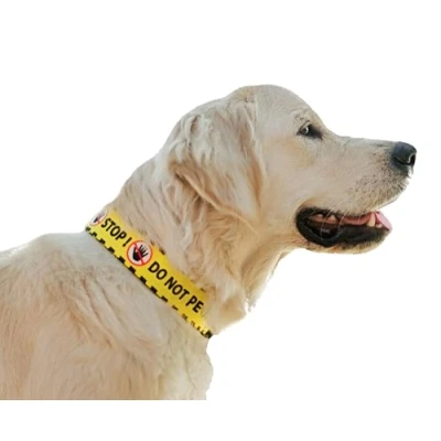Dog collar in yellow and black with a safety warning, DO NOT PET, designed to alert people that your pet is not comfortable with touch and/or human interaction Reversed collar has a black colour with yellow warning "DO NOT PET". This polypropylene dog collar has a plastic buckle for a fast release and metal ring to attach the leash Reliable, chrome-plated ring is strong and durable, ensuring your dog's safety. Please check our dog harness and leads to maximise your dog's visibility For dogs with a special needs, scared, unfamiliar with a human touch, dogs in heat and other. Size L designed for dogs with neck circumference from 40 to 67 cm (15.8 - 26.4") Inspired by the Yellow Dog Project, which promotes awareness and understanding of dogs who need space. Handmade in Poland by Dingo – an original brand since 1977