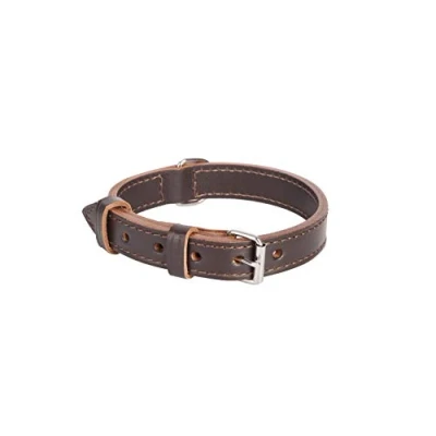 Dingo Dog Collar from Double Stapled Leather, Lined, Durable Handmade Classic, Brown 12524