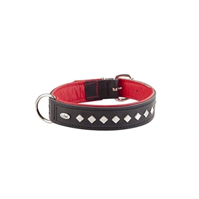 Dingo Dog Collar Made of Exclusive Soft Leather, Decorative and Durable Black with Red Padding 11440