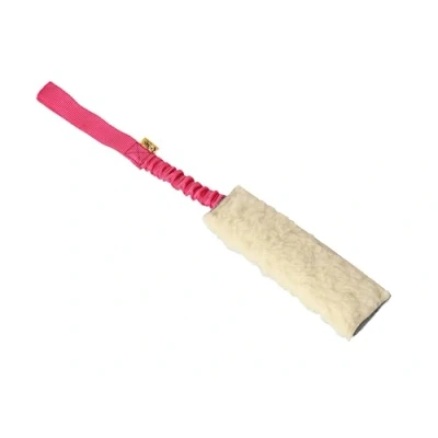 Soft, lightweight and fluffy tug toy with 1 strong bungee handle, handmade from wool and polypropylene, suitable for dog training, agility, tug of war, chasing and play Bite wool pad with a soft filling is approximately 21 cm long, and bungee handle is about 26 cm long. Tug toy has a 6 cm of width, however dur to manual production, some dimensions might slightly vary from given ones Bungee handle amortizes pulling during training and play. Do not let the dog to bite the handle. Always supervise. If you noticed the tug toy is damaged, replace it immediately Natural material and smell can increase dog’s prey drive and it is safe for teeth, however we recommend to check if your dog is allergic to wool for best safety reassurance Always supervise playtime and trainings. Dog toys, bungee chaser and other pet accessories are handmade in Poland by Dingo – original brand since 1977