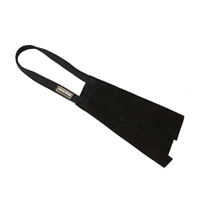Dog bite rag with 1 cord handle. Black bite tug made of flat genuine leather For the dog training, puppy bite work, play, fetch, reward, tug of war, agility etc Full grain leather texture and natural smell are very attractive for dogs Always supervise during the training & play. Do not allow the dog to bite a handle Leather tugs for the mighty bite training experiences. Dingo Gear bite tugs were tested and approved by professional K9 trainers