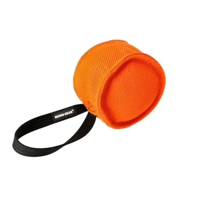 The orange nylcot tug toy, featuring a drum shape, enhances various dog training activities. Crafted from nylcot, it offers several material advantages, including flexibility and strength Usage: bite training, IGP, K9, obedience, dog sports, water training, agility, fetching, tug of war, as a reward, for play with the dog, in other dog training Berta dog tug has a friendly shape to catch and bite, it's handmade of durable nylcot (French material is commonly used in full bite suits sewing process) Always supervise during training and playtime. Do not allow the dog to bite the handle. Please note that some dimensions may vary slightly due to manual production Berta tug toys provide powerful bite training experiences. Our equipment has been tested and approved by professional K9 trainers. Dingo Gear: the original brand since 1977