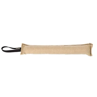Jute bite tug has one wide handle. The dog tug is durable, sewn with strong stitches. Size 60 x 8 cm = the tug surface dimensions Usage: bite training, reward training, dog training, tug of war, command training, IGP, K9, firm grip, obedience training, aport, dog sports, play with a dog, at your discretion Dog jute tug is designed to improve dog's bite skills. Do not allow the dog to bite the handle. Always supervise during the training Jute is attractive for dogs, natural fabric encourages to bite and get the prey. Dog tug is safe for dogs and humans, what's more, after biting it doesn't return any bites;) Jute bite tugs for the mighty bite training experiences! Dingo Gear equipment was tested and approved by professional K9 trainers