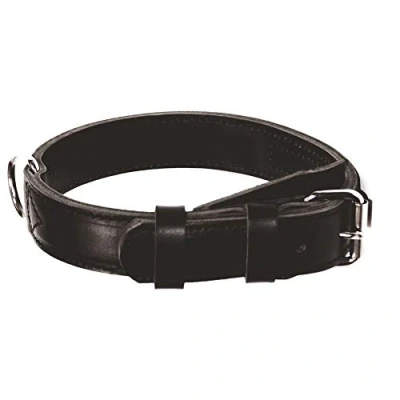 DINGO GEAR Civilian Genuine Leather Dog Collar, Strengthened and Stitched in Multiple Layers, for Training Walks, Neck Girth 48 56 cm, Black (S04041)