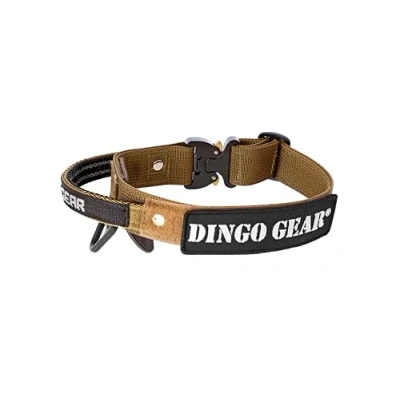 DINGO GEAR Cobra Dog Collar with Professional Safety Buckle, Strong Handle and Label Attached Velcro like Fastener, for Defence Training, Special Tasks, Neck Girth 49 59 cm, Coyote Brown (S03131)