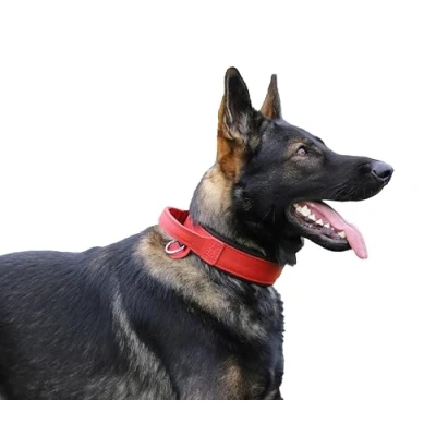 The leather dog collar features a solid handle for holding, lifting, and stopping. The training collar is padded with soft material, making it comfortable for the dog to wear. The fittings are chromed The Drago collar is suitable for dogs with a neck girth between 40 and 48 cm. Measure the dog's neck (neck circumference) and add a 2 cm gap for comfort Dog collars are approximately 5 cm wide and 1 cm thick. The length depends on the size, but please keep in mind that this is a handmade product, so some dimensions might slightly vary from the given ones The collar can be used as a regular collar and as a training collar. Its solid construction is helpful for strong, muscular breeds, assisting in teaching them to walk and cooperate with humans Durable collars, training leads, bite tugs, and other dog training equipment are crafted by hand in Poland by Dingo Gear – an original brand since 1977