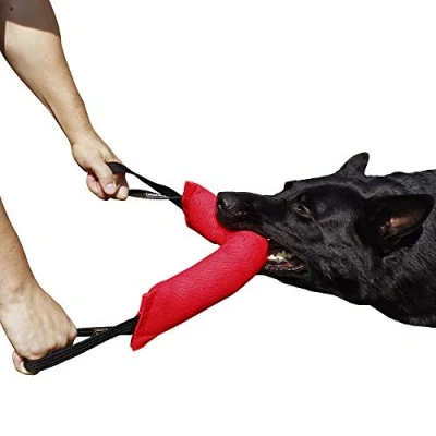 DINGO GEAR Nylcot Bite Tug for Dog Training K9 IGP & Fun, 2 Handles, Red 45 x 8 cm