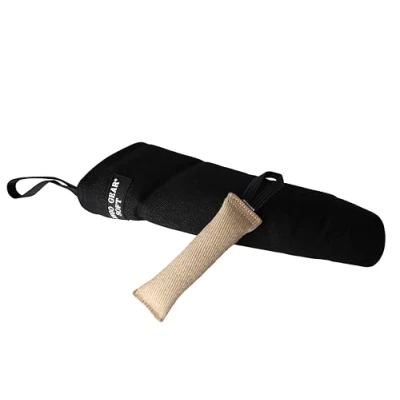 Advanced set: Nylcot bite sleeve, medium soft, for the dog training, 63 x 31 x 12 cm, and jute bite tug with a handle, 28 x 6 x 6 cm, suitable for adult dogs training Universal bite sleeve fits both left and right arm of the decoy. It has a grip inside to protect the fingers of the helper and a handle for correcting the grip and easy carrying Nylcot (French material) is a fabric used for sewing full-bite clothing. Its density and texture are significant for the hardness of the training sleeve. This model includes midi soft nylcot The dog should have many materials, textures to bite and play with, so in our set you can use nylcot bite sleeve for bite training and a jute bite tug for play Professional dog training equipment, including bite sleeves, tug toys, IGP and training tools is hand sewn in Poland by Dingo Gear - original brand since 1977