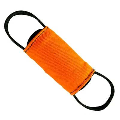 DINGO GEAR Training Tug Toy Cylinder Shaped Dummy for K9, IGP, Bite Lessons, Dog Sports, Retrieve, of War, Play, 2 Handles, Orange Nylcot 15 x 6 cm (S02810)