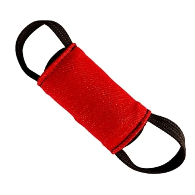 Bite tug in the cylinder shape has 2 sturdy handles, which allows for various activities such as tug of war, retrieve training, and bite lessons. The lightweight design makes it easy to handle for both the trainer and the dog The tug toy multi-functional nature means it can be used for training purposes, playtime, and even as a reward for good behavior. It's a practical and engaging tool for both dogs and their owners The nylcot provides the right durability and flexibility. This material is used as an outer shield for sewing full anti-bite suits. The training dummy is available in 5 colors of nylcot: black, red, orange, blue, and pink The tug toy measures 15 cm in length and 6 cm in height, excluding the handles. Remember to always supervise during training and playtime, and never allow the dog to bite the handles Tug toys, professional dummies, and other dog training equipment are handcrafted in Poland by Dingo Gear, the original brand since 1977. Please note that some dimensions may vary due to manual production