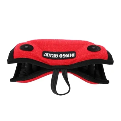 Red nylcot bite wedge has a medium wide, hard bite pad and the 2 holder inside the tube. 1 amortized handle is sewn strongly into material, providing right stability during the dog training Usage: puppy training, bite training, decoy training, dog training, tug of war, IGP, K9, prey drive, obedience training, army/special forces dogs training, dog sports, play with a dog, other The mini bite sleeve allows the dog to improve its bite skills and learn new techniques. Do not allow the dog to bite the handle. Always supervise during training You can wear bite wedge both on left and right hand. Padding allows you to quickly take off the sleeve. Dog mini sleeve is reinforced with durable material Crafted by hand dog wedges, pillows, sleeves and other training tools for the mighty bite training experiences come from Dingo Gear - original brand since 1977