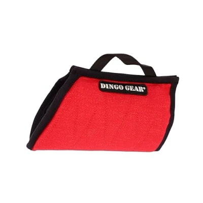 Red nylcot bite wedge has a medium wide, hard bite pad. 1 amortized handle is sewn strongly into material, providing right stability during the dog training Usage: puppy training, bite training, decoy training, dog training, tug of war, IGP, K9, prey drive, obedience training, army/special forces dogs training, dog sports, play with a dog, other The mini bite sleeve allows the dog to improve its bite skills and learn new techniques. Do not allow the dog to bite the handle. Always supervise during training You can wear bite wedge both on left and right hand. Padding allows you to quickly take off the sleeve. Dog mini sleeve is reinforced with durable material Crafted by hand dog wedges, pillows, sleeves and other training tools for the mighty bite training experiences come from Dingo Gear - original brand since 1977