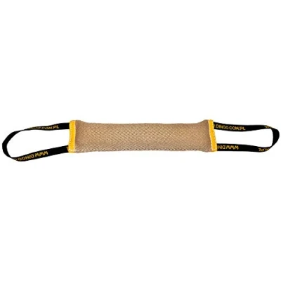 Jute bite tug with 2 handles 40 x 6 cm + handles 15 cm For tug of war, dog bite training and fun Yellow piping (this is for dog that he or she could see the endings of the tug) Dingo - original brand since 1977