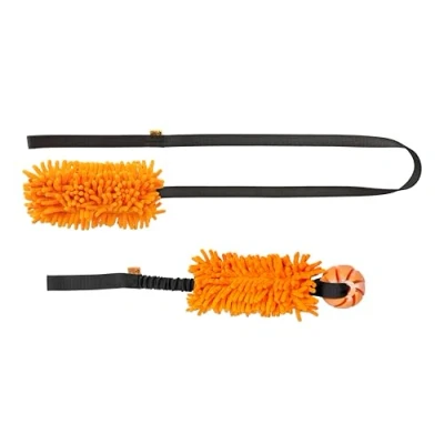 DINGO Set: 2 Dog Toys Rope Wand with Long Handle & Chaser Tug Toy Ball and for Training, Playing, Agility, Fetch, Microfiber Orange Z30052