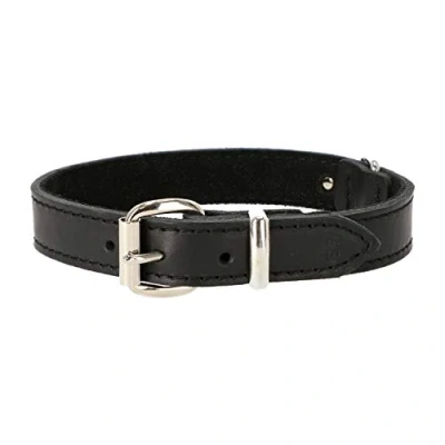 Soft leather collar, lined , chrome fittings, 18mm x 32-40cm black Mild in touch, strong in use