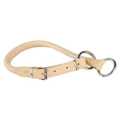 Dingo Tightened Dog Collar, Made of Soft Leather in Round Shape, Natural 12242
