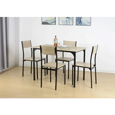 Elegant Oak & Black Design – The classic combination of oak with black frames adds a timeless, contemporary touch to your dining area. Sturdy Metal Frame – The metal tubes with black powder coating ensure a solid and stable structure for both the table and chairs. Durable Oak Finish – The 15mm MDF table with oak PVC provides a natural wood look while being easy to maintain. Complete Set – Includes a dining table and 4 chairs, perfect for family meals or entertaining guests. Table Size: L 110 x W 70 x H 76.5cm Chair Size: L 38.5 x W 48 x H 86cm