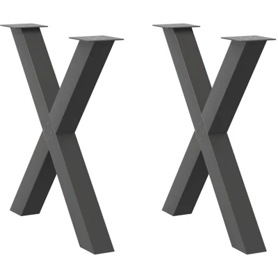 VidaXLThese dining table legs combine form and function. It's an ideal choice for customising your dining table. Durable material: This furniture table leg is made of powder-coated steel, making it sturdy and long-lasting.Sturdy structure: The metal table leg's X-shaped design ensures it can support a heavy tabletop.Practical design: This desk leg includes adjustable foot levelers, ensuring stability even on uneven floors and minimising floor scratches. Additionally, the bracket features pre-drilled holes and delivery-included screws, which can be used for fixing the leg to the tabletop (not included), making it easy to assemble.Modern aesthetics: The table leg has clean lines and a geometric design to improve the furniture's overall look. And it goes well with any tabletop of a suitable size. Good to know:The delivery only contains table legs, the tabletop is not included.