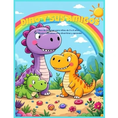 Dino y sus amigos: Libro de colorear para niños 3 a 6 años — 50 dibujos adorables divertirse aprender