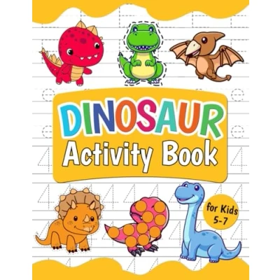 Dinosaur Activity Book for Kids 5 7: Cute and Fun Puzzle Activities like Coloring, Word Search, Crossword, Sudoku, Maze, Dot to dot, More Boys & Girls with Solutions