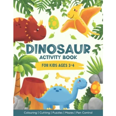 Dinosaur Activity Book For Kids Ages 3 4: Over 50 Fun & Engaging Activities Including Colouring, Cutting, Puzzles, Mazes, Pen Control Much More! (UK Edition)