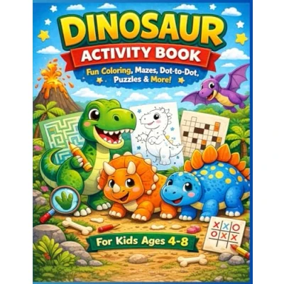 Dinosaur Activity Book for Kids Combo book: Fun Coloring Pages, Mazes, Dot to Dot, Puzzles & Learning Games Boys and Girls (Dino Adventure Series)