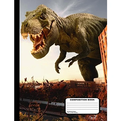 Dinosaur Attacks and Fighter Jets Defend Composition Notebook Blank Unruled 200 pages / 100 sheets, 9 3/4" x 7 1/2
