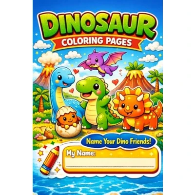 Dinosaur Coloring Pages Worksheet in Black and White Cute Illustrative Style: